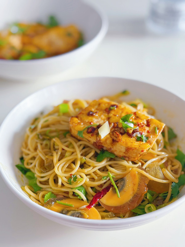 干碱面沸水下锅煮6分钟捞出、淋油拌均抖散备用