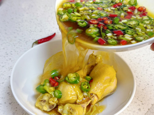 手撕鸡淋上料中