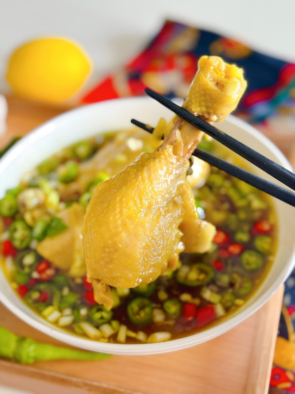 食材:青红椒,藤椒,大蒜,鸡腿