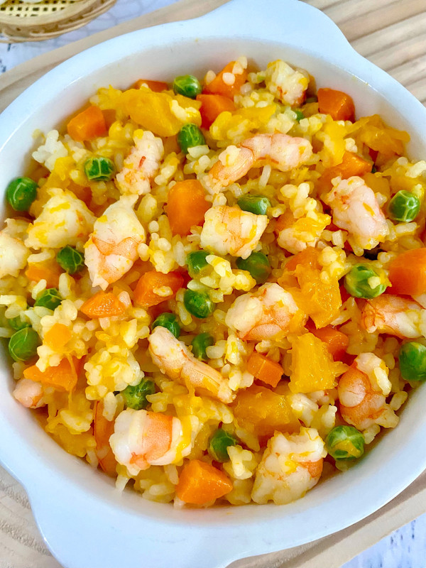 鲜甜好吃的南瓜虾仁烩饭做好了