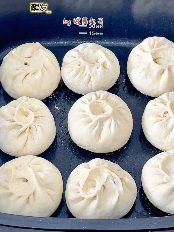 面团发酵至两倍大,分成均匀的小剂子擀圆。
