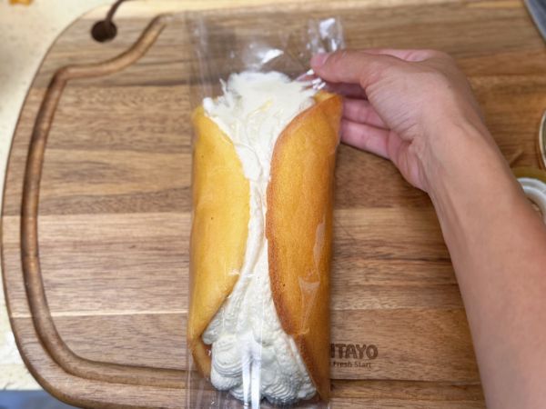 烤蛋皮卷的等候期,可以打发淡奶油,将250克淡奶油加入15克细砂糖中打发至有纹路状态,夏季放入冰箱冷藏一会儿效果更好哦