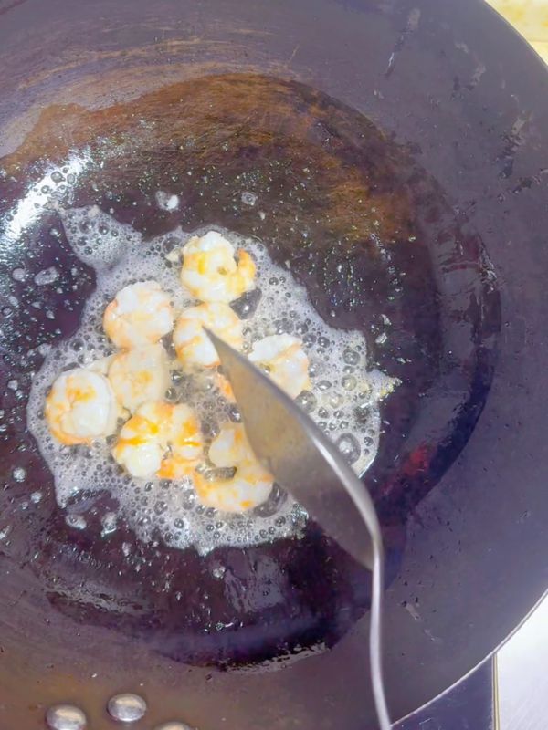 现将虾仁炒香