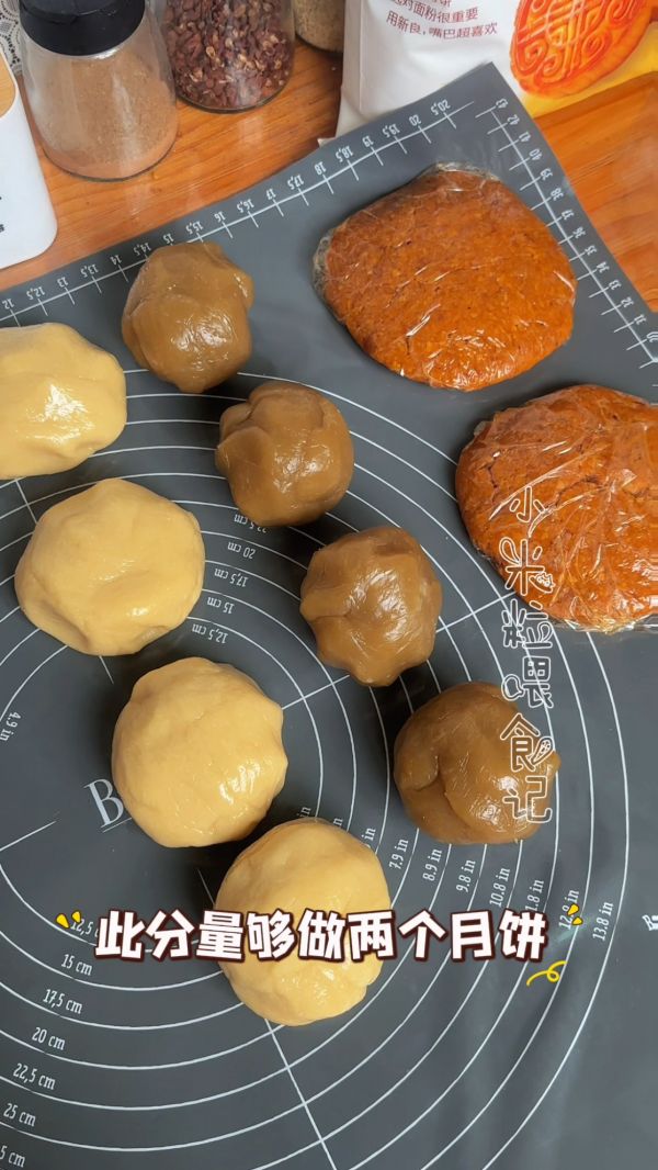 饼皮分成120克一个,馅儿125克一个 共可做两个600克大月饼