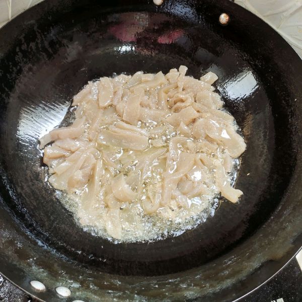 酸豆角切成段,青红辣椒切成小块。蒜瓣拍碎切成小块。生姜切成丝,干辣椒切成段备用!