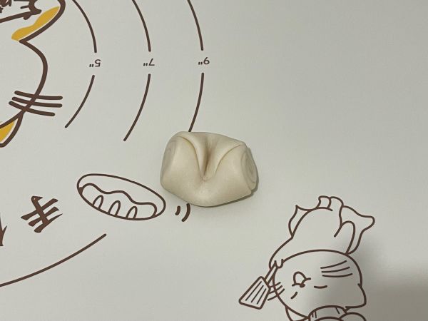 擀圆包豆沙蛋黄。中间厚边缘薄。
