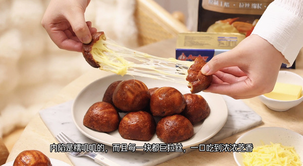 内馅儿是糯叽叽的,而且每一块都巨拉丝,一口吃到浓浓芝香