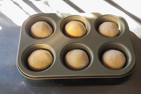 牛奶+鸡蛋+白砂糖+酵母融解,加入高筋粉和盐;