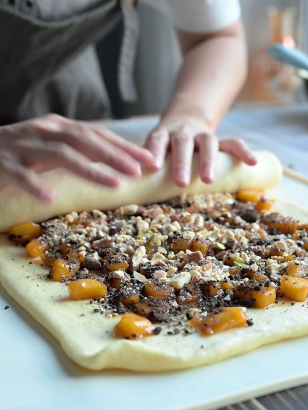 #安佳黄金拍档#焦糖奥利奥坚果苹果肉桂卷(