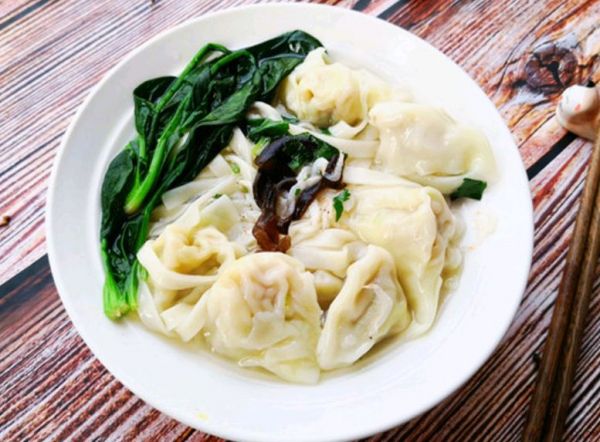 将面条和馄饨盛到碗里,上面撒上木耳丝,再摆上菠菜,最后浇上热汤就可以啦。