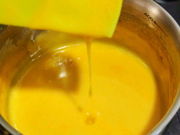 将牛奶,黄油,细砂糖和芝士片放入小锅中