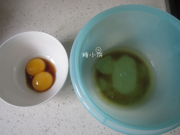 鸡蛋两个把蛋黄和蛋清分开 我在蛋黄和蛋清中分别都加了一点咖啡酒~觉得这样比较香。原配方没有这样做,大家可以省略