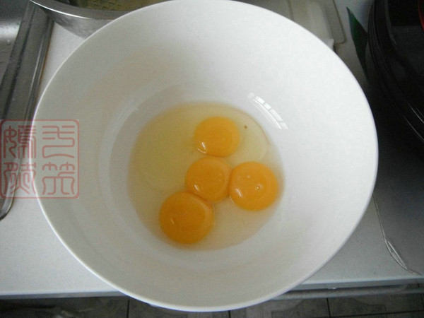 取三个鸡蛋,蛋白与蛋黄分离,然后将三个蛋黄与一个全蛋混合,